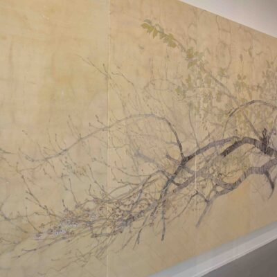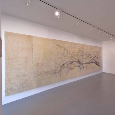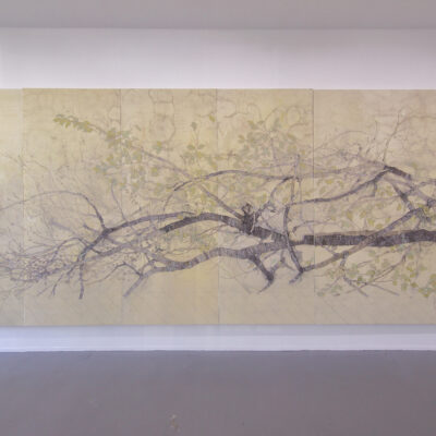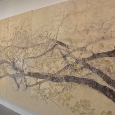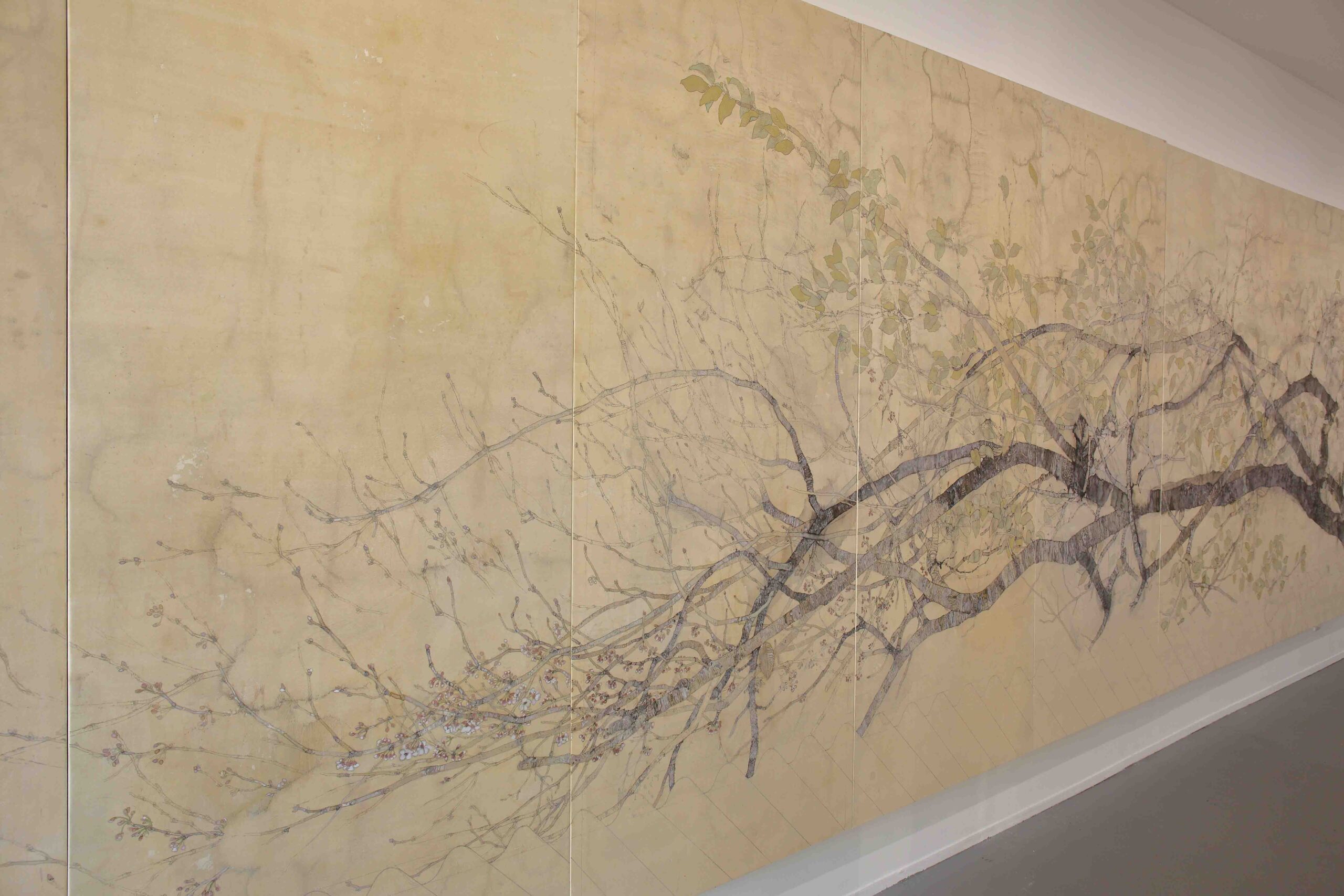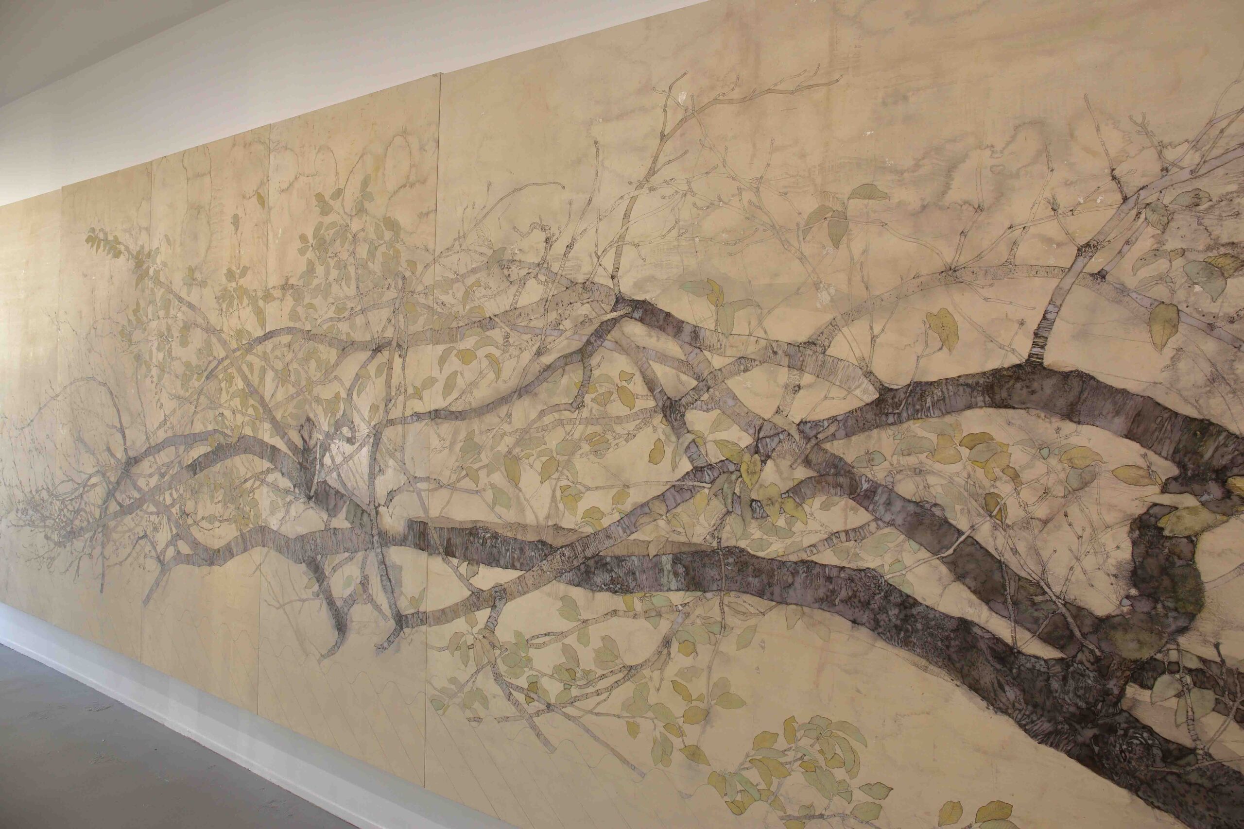 画面を前にして最初は写生を見ながら少しづつ画面に直接墨で描いていく。